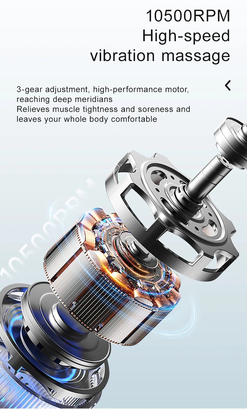 • 3-in-1 Therapy: Combines gentle heat, high-frequency vibration (up to 10,500 RPM), and NMES stimulation for deeper muscle activation and tension release.